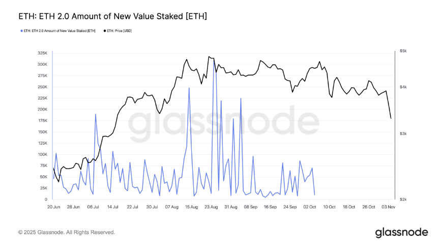 Based on reports, ETH was trading near $3,389 when this movement was noted. The token had slipped about 12% in the previous week, which makes big staking flows more visible because large buys or internal transfers stand out against falling prices.