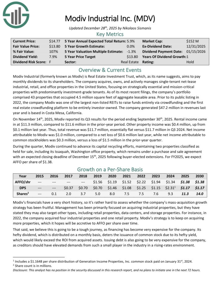 Monthly Dividend REIT #1: Modiv Industrial (MDV)