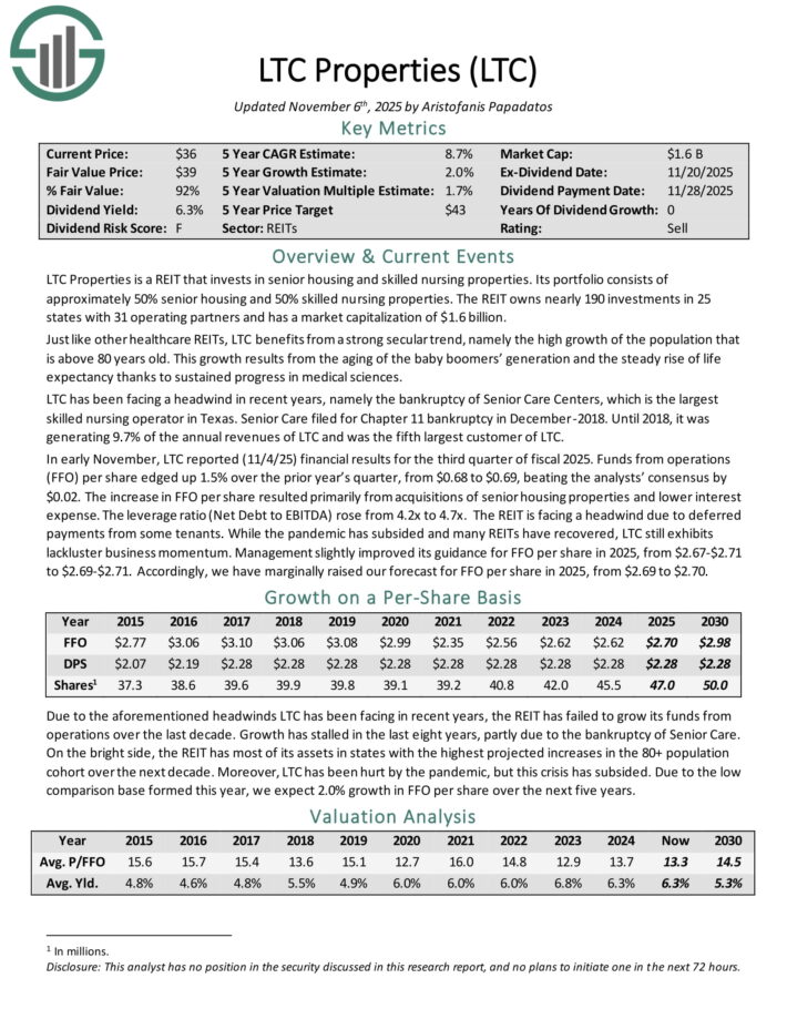 Monthly Dividend REIT #6: LTC Properties (LTC)