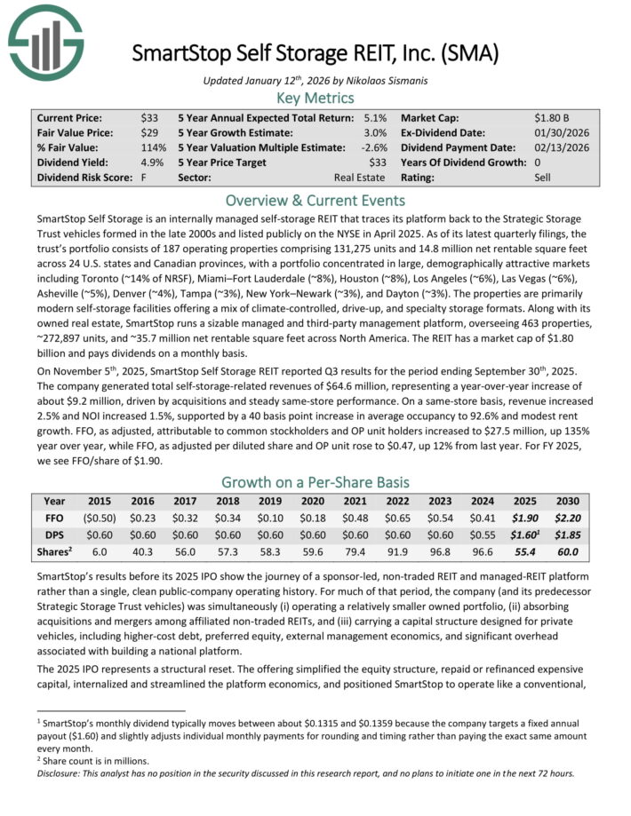 Monthly Dividend REIT #8: SmartStop Self Storage REIT (SMA)