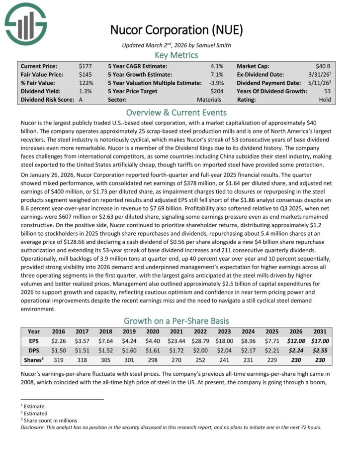 Undervalued Dividend Aristocrat #10: Nucor Corp. (NUE)
