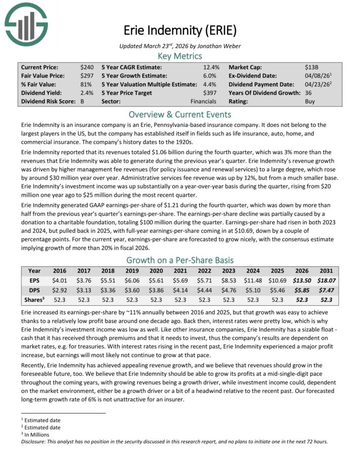 Financials Sector Dividend Aristocrat #4: Erie Indemnity Co. (ERIE)