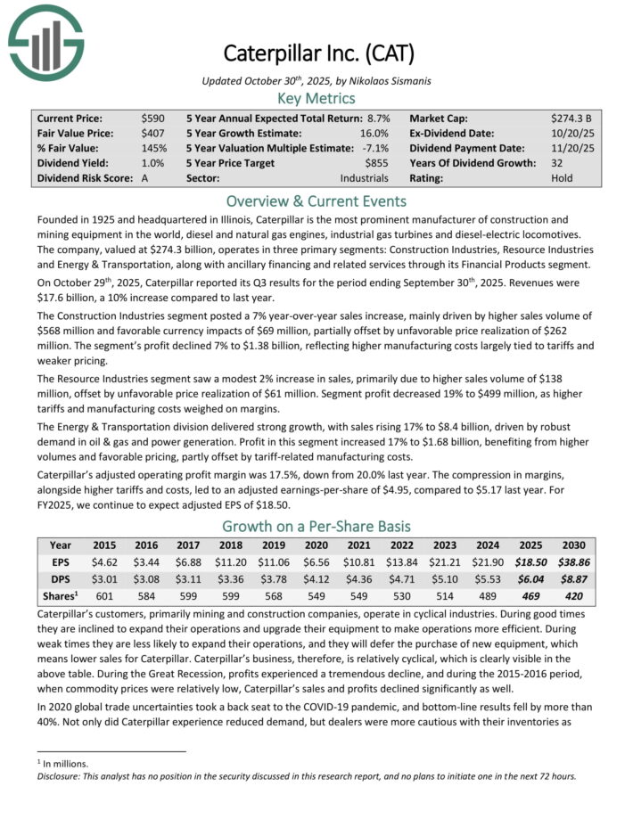 Click here to download our most recent Sure Analysis report on CAT (preview of page 1 of 3 shown below):