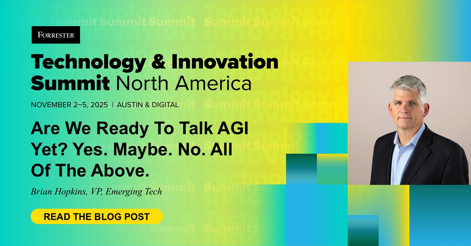 Want to hear more about AGI? I’ll be presenting a keynote called “Agentic To AGI — It’s The Journey, Not The Destination” at Forrester’s upcoming Technology & Innovation Summit North America, November 2–5 in Austin. Check out the full agenda and make plans to meet us there — and start preparing now for the quiet roar of AGI.