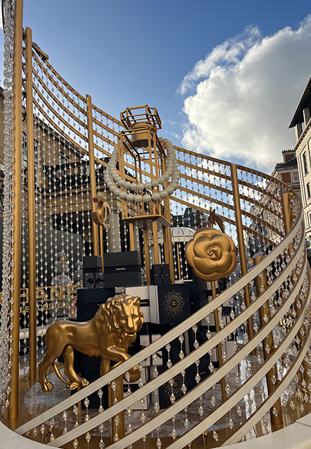 Chanel’s Winter Constellation Pop-Up dazzled Covent Garden with a celestial light installation celebrating the iconic No5 bottle. Shoppers were able to scan QR codes to reveal ‘falling stars’ digital interactivity moments. Staff carried adorned Chanel No5 bags, which added a theatrical touch to spark conversation and interest among visitors.