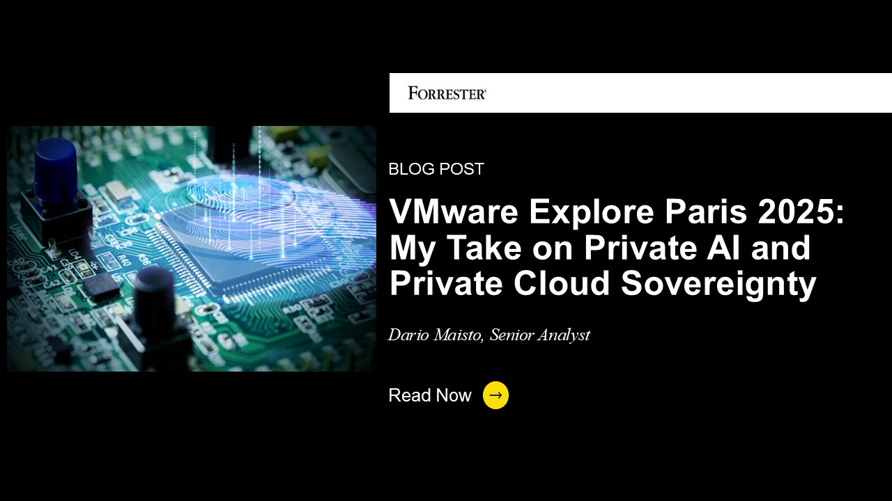 Interested on learning more on VMware’s offerings for sovereignty? Reach out to Forrester to schedule a guidance session or inquiry to help guide your sovereign AI cloud infrastructure initiatives or to learn more about this event.