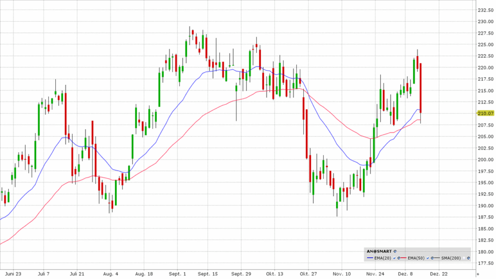 AutoNation hat in jüngster Vergangenheit mit überraschend starken Quartalszahlen die Erwartungen übertroffen, sowohl beim Umsatz als auch beim bereinigten Gewinn pro Aktie. Das Unternehmen setzt weiterhin auf eine aggressive Kapitalrückführung und kündigte im Oktober einen zusätzlichen Aktienrückkauf in Höhe von 1 Milliarde US-Dollar an, was ein starkes Signal an den Markt sendete. Kurzfristig war in den vergangenen Tagen ein stärkerer Anstieg zu verzeichnen, der jedoch zuletzt wieder leichte Konsolidierungstendenzen zeigte. Aktuell sahen wir den Test der 50-Tagelinie.